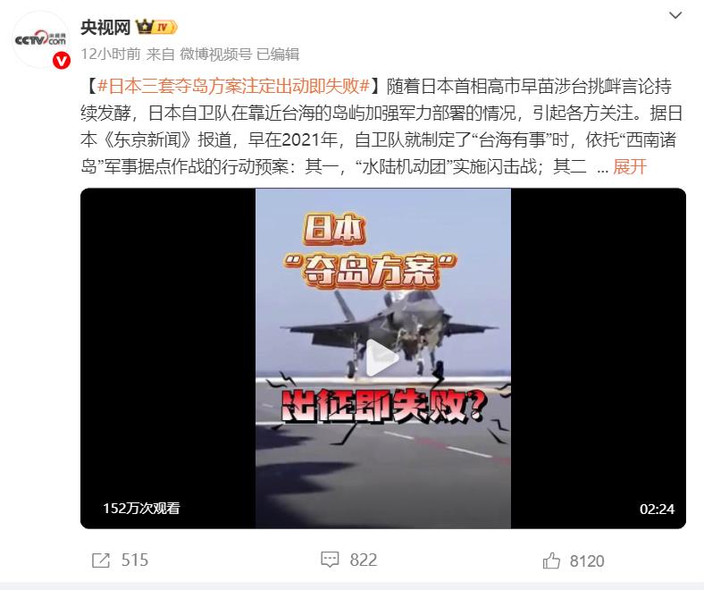 据央视消息,随着日本首相高市早苗涉台挑衅言论持续发酵,日本自卫队在靠近台海的岛屿加强军力部署的情况,引起各方关注。据日本《东京新闻》报道,早在2021年,自卫队就制定了“台海有事”时,依托“西南诸岛”军事据点作战的行动预案:其一,“水陆机动团”实施闪击战;其二,陆上自卫队实施大规模两栖作战;其三,导弹火力压制与封锁。日本自卫队向西南用兵,这三套方案都打不赢!首先,制空权拿不到;其次,远程火力挡不住。注定出动即失败!