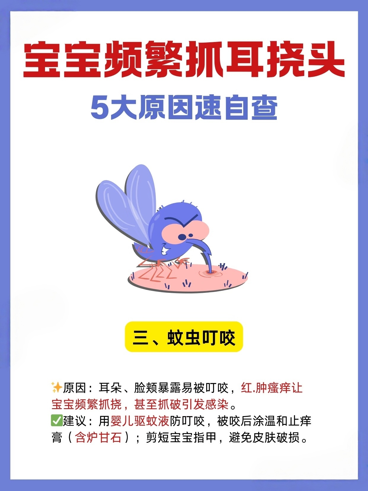 有时候明明没看到蚊子,但耳朵上突然冒出一个红疙瘩,宝宝抓得停不下来,十有八九就是蚊虫叮咬。
