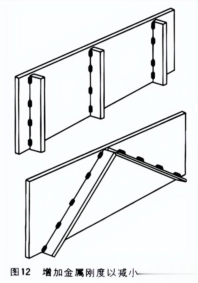 ① 以折叠、卷边或槽形加强的方式增加刚性;