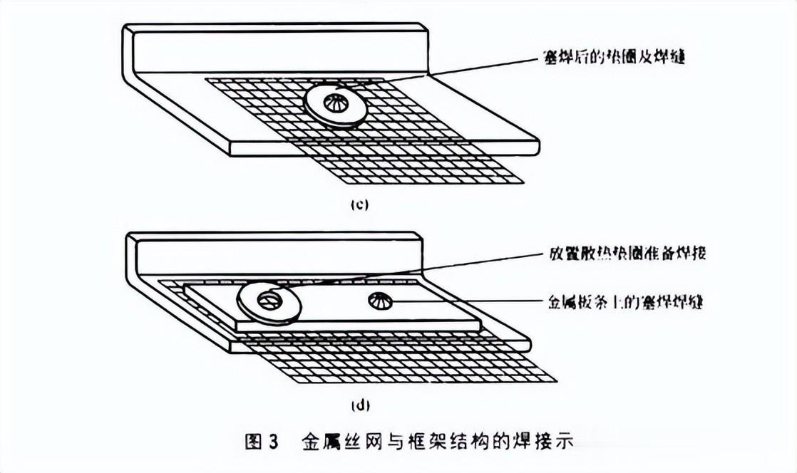2、当需要采用熔化极气体保护焊、药芯焊丝气体保护焊或钨极氩弧焊将屏栅、金属丝网或延伸金属焊接到钢结构框架上,进行焊接时金属丝网容易产生烧穿和焊缝未熔合现象,应如何进行处理?