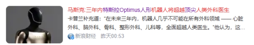 1月12日消息,据《独立报》报道,埃隆·马斯克声称,特斯拉的Optimus人形机器人将在短短三年内超越世界上最好的人类外科医生。