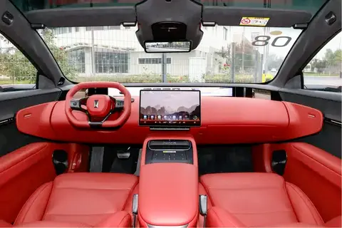 一拉开车门,便能感受到扑面而来的豪华科技氛围。内饰呈现出一种触手可及的高级感,座椅采用Nappa真皮材质,触感柔软且带有恰到好处的韧性,坐上去仿佛置身于家中舒适的大沙发。新推出的岩棕内饰配色极具格调,搭配天然桦木饰板,暖色调巧 妙地中和了科技感带来的冰冷,木纹细腻,档次感得以显著提升。此外,还有红色内饰可供选择,暗红与黑色桦木饰板相搭配,既运动又不失沉稳,想必会受到年轻人的青睐。