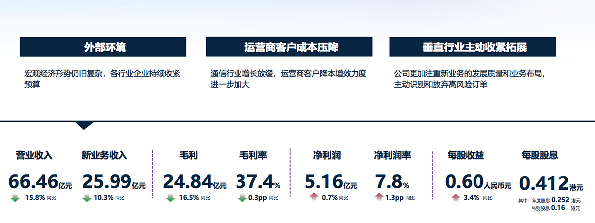 虽然,面对经济大环境和地缘政治的影响,面对企业客户特别是运营商客户因自身增长压力而持续大幅缩减成本的现实,亚信科技营收有所下降,但是,2024年亚信科技的净利润却达到5.16亿元人民币,优于上一年度;净利润率同比增长了1.3个百分点至7.8%,保持了良好和健康的盈利能力。
