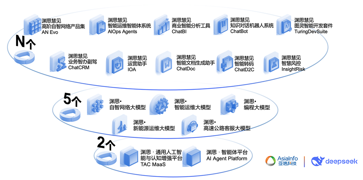 实际上,亚信科技自研的渊思大模型在AI注智领域取得显著突破,AI大模型相关项目总数突破100个,并迅速引入DeepSeek V3、R1基座模型,深度注智业务支撑系统,渊思行业大模型产品体系全栈适配DeepSeek,并实现了“国产大模型+算力+大模型服务+垂直场景”的闭环上线运营。