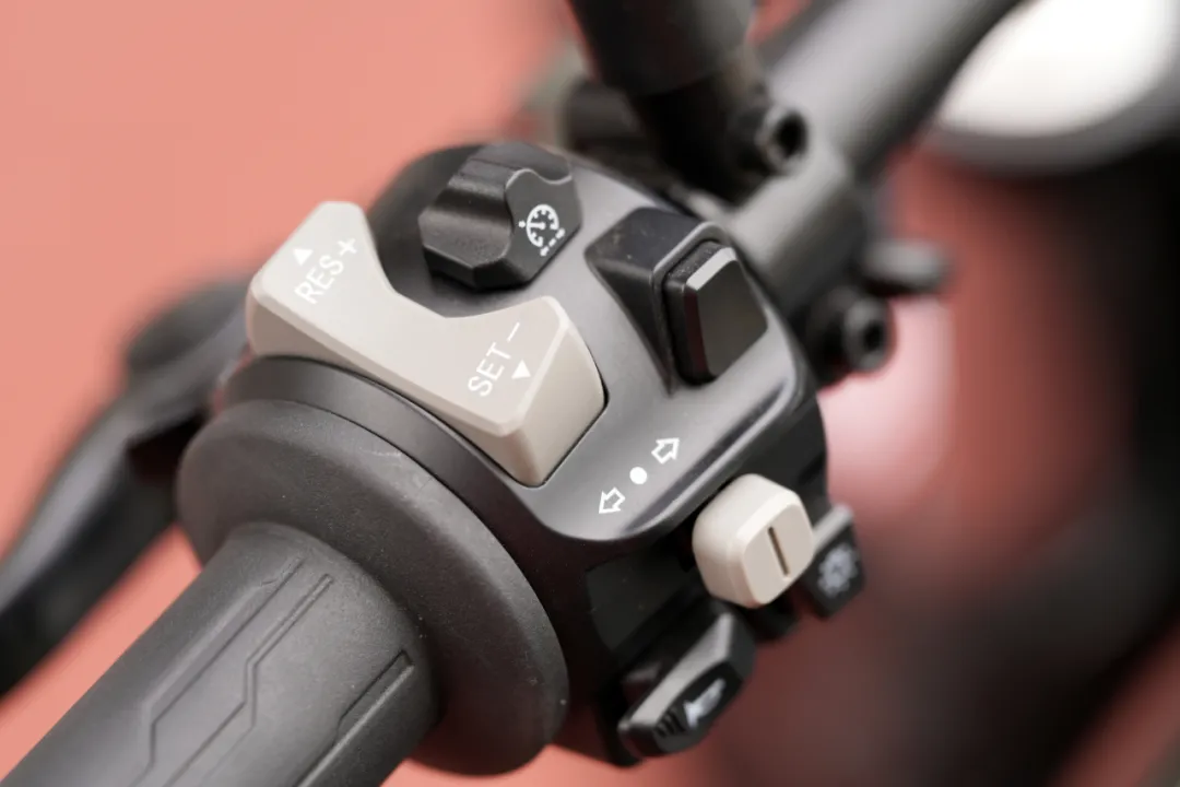 除了电子油门之外,中大排量车型常有的定速巡航同样出现在黑旗950上。而且从现场操作来看,黑旗950的定速巡航操作相当方便。