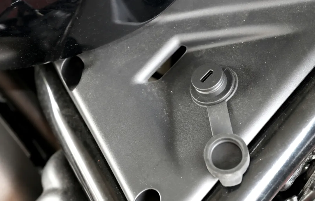 其表现的话,达摩院会在后面的试驾体验中介绍。此外,黑旗950在侧面还有一个25瓦的快充接口,当然这辆车还有边撑熄火功能确保行车安全。