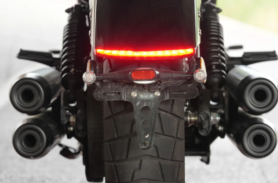 从侧面看,镀铬的V4发动机与双出排气布局相互呼应,让整车的层次感更强,整体气质更偏向沉稳与简约。