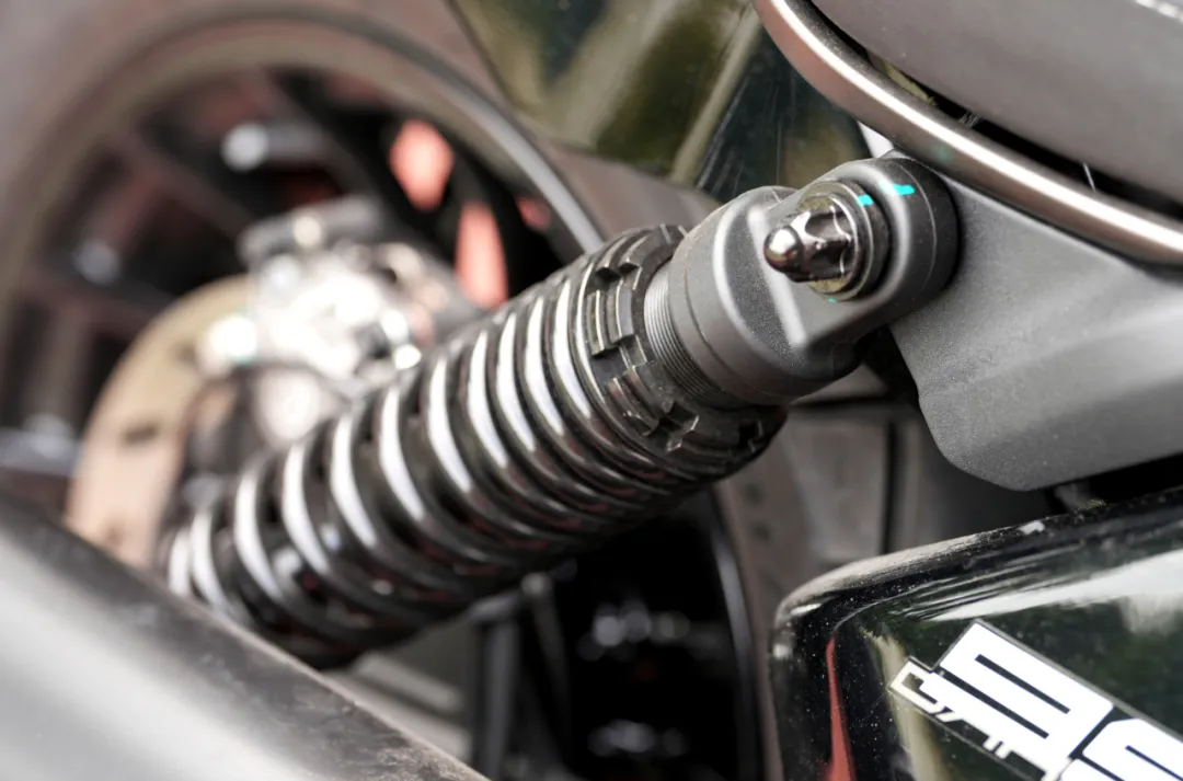 减震方面,黑旗950采用经典的美式巡航带防尘套的正置的减震;后减震是一个预载可调的弹簧减震,车子的坐垫非常的柔软,配合起来整体的支撑性相当不错。