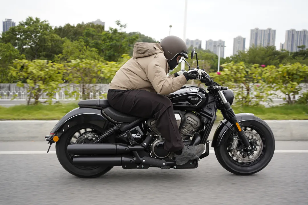 尤其当发动机在5000到7000转时像一个“疯牛”,扭矩输出相当迅猛。在加速方面,胖子觉得黑旗950不像巡航车,而是像运动型街车。
