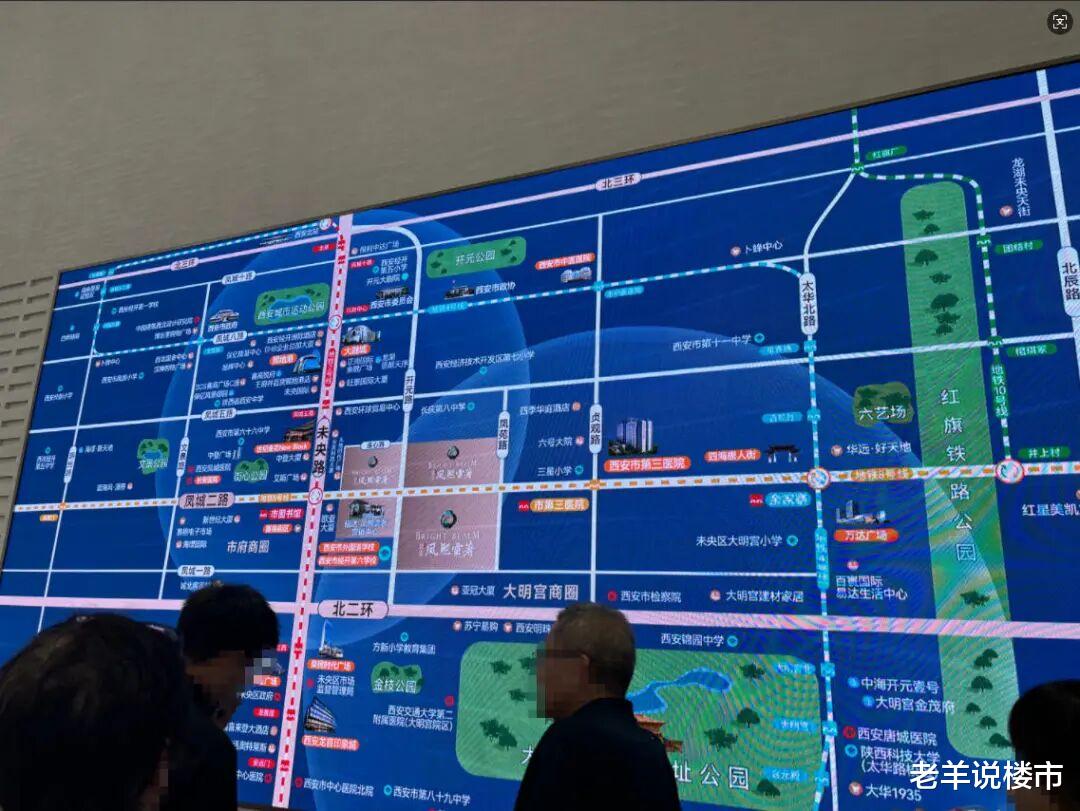 从城市大坐标看,项目处于西安南北中轴线,城北市图书馆(已搬迁)、赛高国际都属知名地标,目前区域内地铁2号线、8号线双地铁加持,距项目大约在500-800米之间,很贴合上班族通勤痛点,区域整体成熟,还有西安市第三医院这样的医疗资源。
