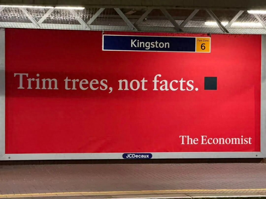 Trim trees, not facts——这是 The Economist (英国《经济学人》)挂在地铁站里的那句口号。