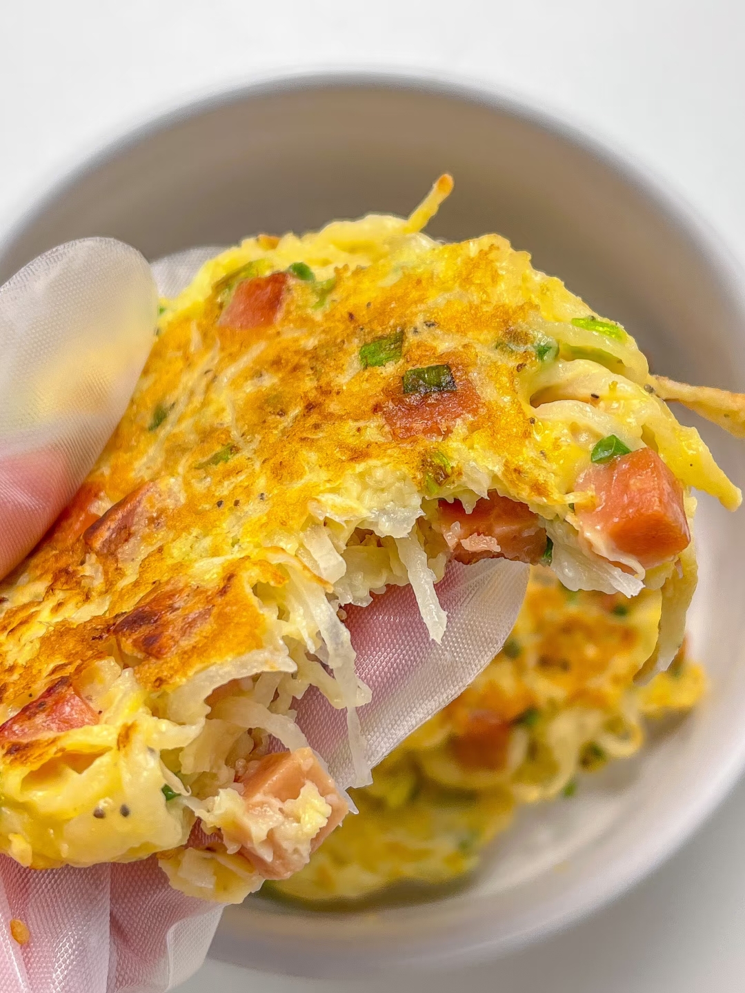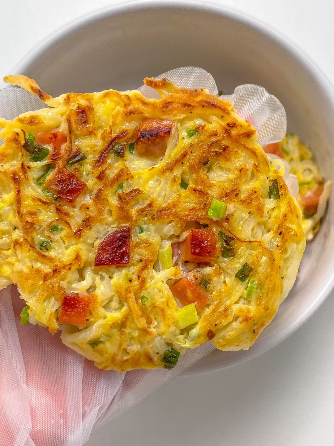 没有刨丝器?用刀切丝也行,粗细不均匀反而更有嚼头!怕掌握不好火候?全程开中小火,煎到两面金黄绝不会出错。