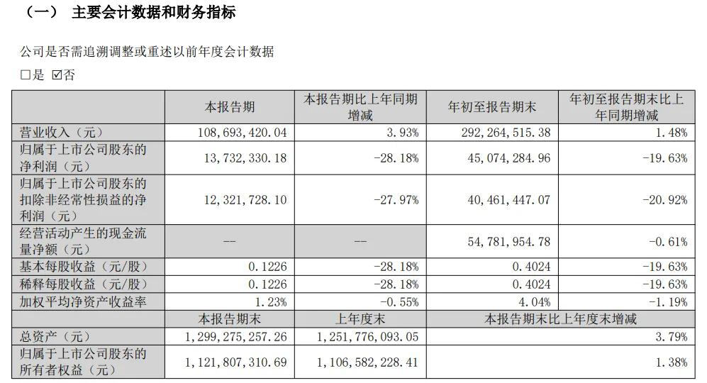 2025前三季度公司实现营业收入同比增长1.48%,归属上市公司股东的净利润同比减少19.63%。