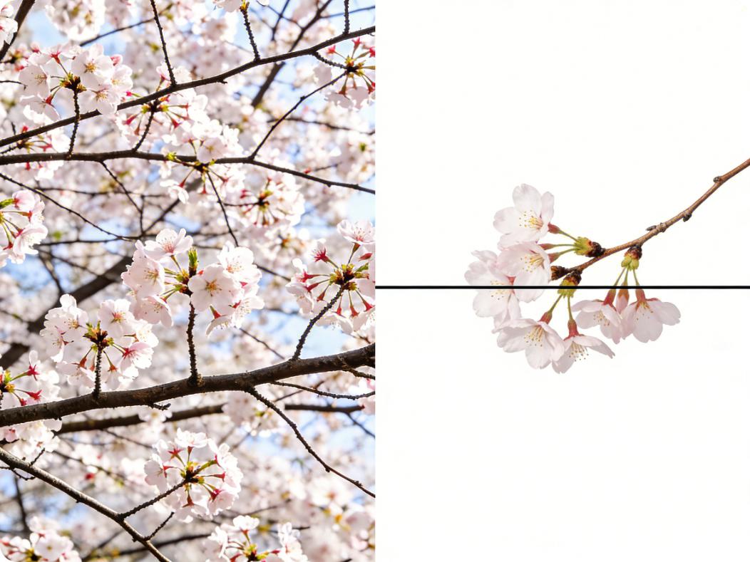 我最开始拍花,就犯了一个致命错误——总想把整棵树、整片花丛都拍进去,觉得这样才够“有春日感”,结果呢?画面乱得像菜市场,没有重点,花瓣和枝叶堆在一起,看起来特别廉价。