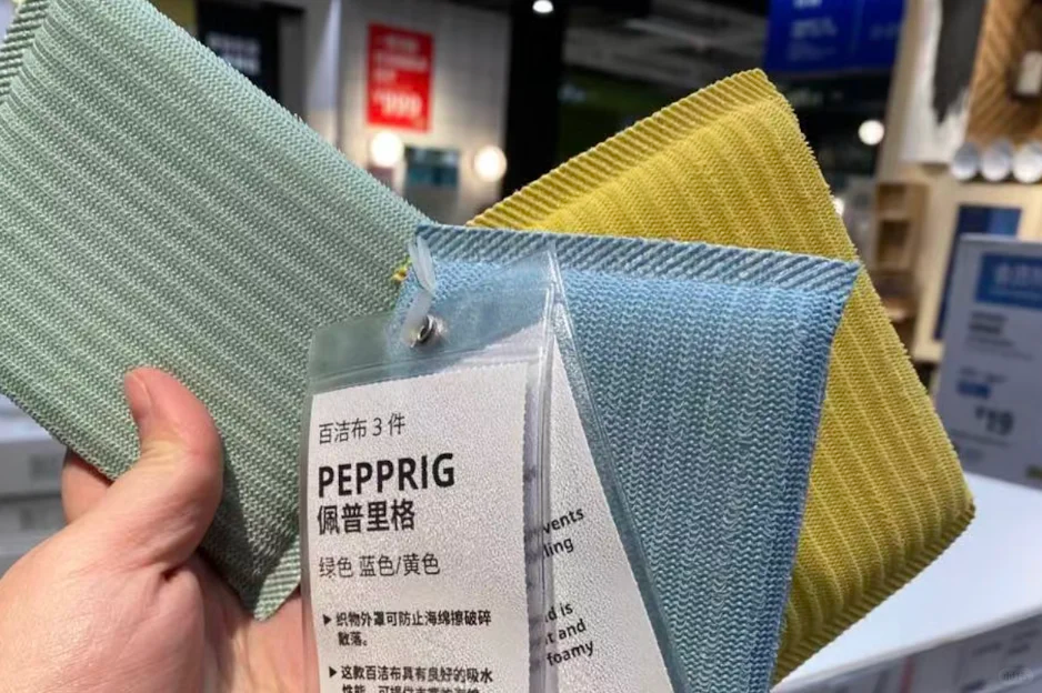 从前我都是在拼夕夕上买百洁布,9.9元三个,偶然的一次逛街,意外发现宜家也有卖,而且4.99就能拿到三个。