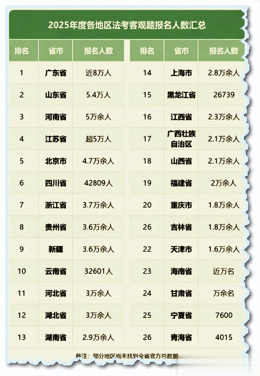 一、2025法考报名数据详解:这些地区热度飙升先给大家梳理最新的报名数据,看清今年的备考趋势: