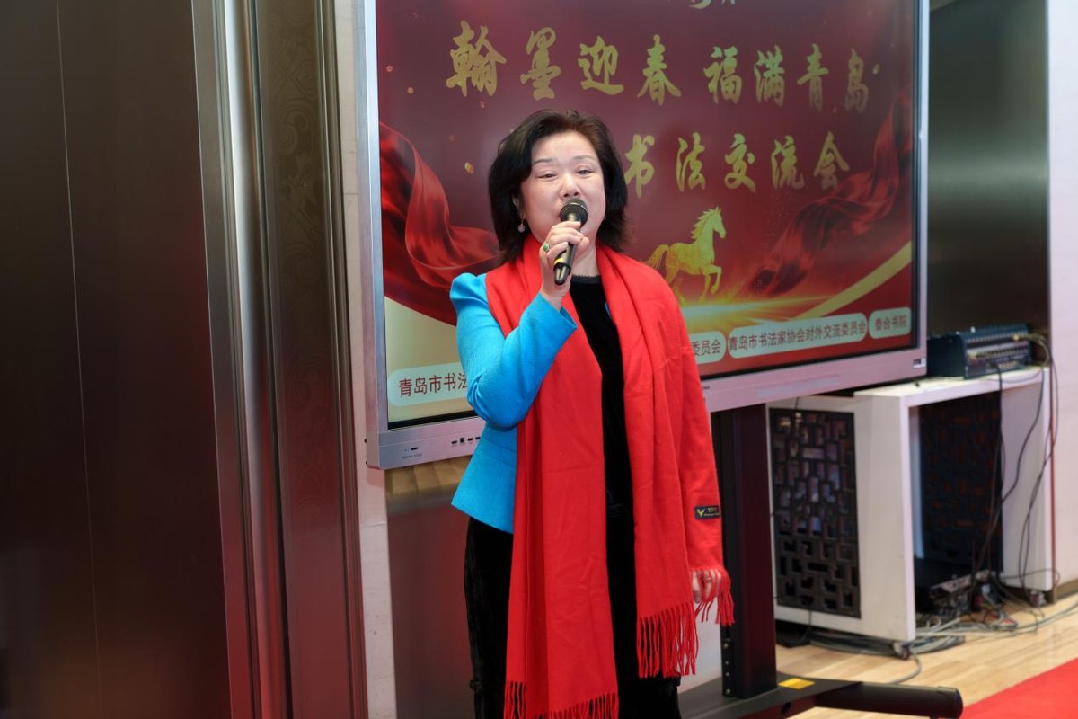开幕式上,民盟青岛市委会社会服务部处长张红梅、青岛市书法家协会副主席张颖先后发表讲话。两位嘉宾分别结合自身工作,阐述了书法艺术作为中华优秀传统文化瑰宝的时代价值,表达了对此次书法交流会搭建文化传播平台、丰富群众新春文化生活的肯定,同时送上了对岛城市民、到场嘉宾及全体参与者的新春祝福,寄语大家以笔墨为桥,传承文化根脉、传递温暖善意,让书法艺术在新时代焕发更蓬勃的生机。