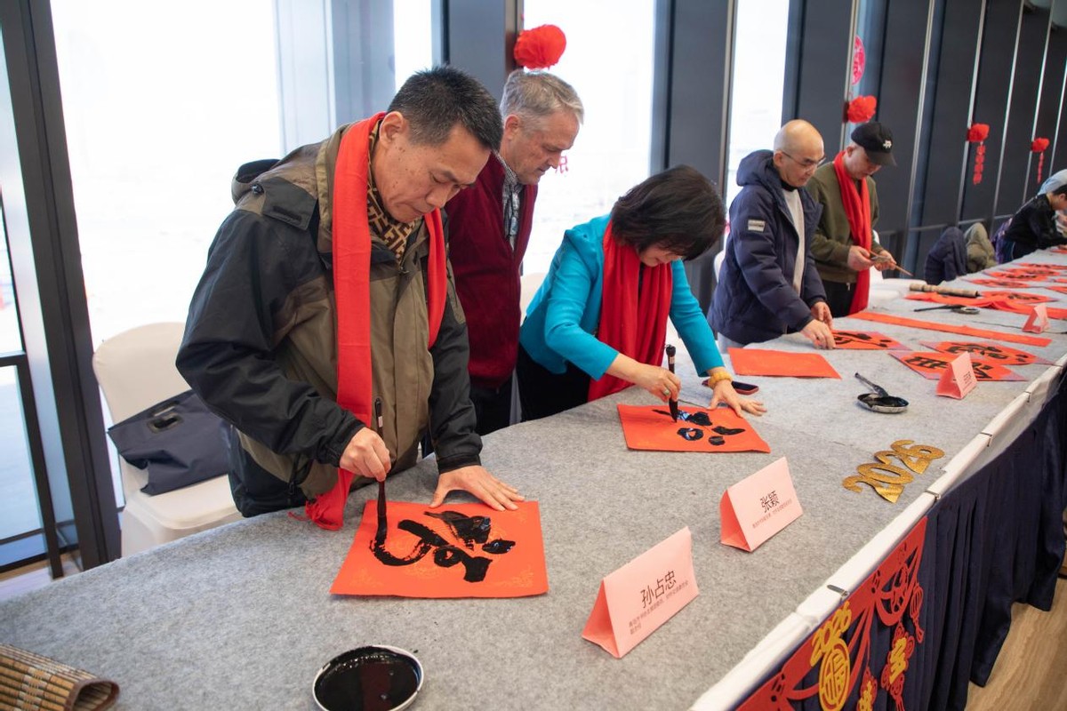 笔墨传情承文脉,福暖岛城迎新春。2026年2月9日,青岛市书法家协会与民盟青岛市委员会、青岛国际会议中心、青岛市书法家协会对外交流委员会、青岛泰合书院、青岛美亚外籍人员子女学校,走进奥帆基地核心区域——上合峰会会址,共同举办“翰墨迎春 福满青岛”新年书法交流会。活动以书法为媒,串联起传统文化传承、中外文化交流与新春美好祝福,在兼具大国气度与海洋风情的城市地标中,奏响了岛城新春文化惠民的动人乐章。