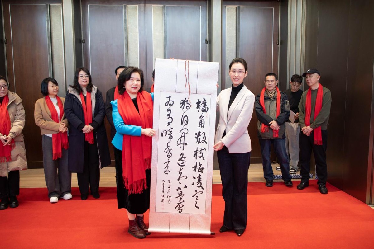 赠作仪式:青岛市书法家协会副主席张颖将个人佳作赠予青岛国际会议中心,青岛国际会议中心有限公司副总经理初晨女士作为受赠代表上台接受赠予。赠作现场,张颖主席详细讲述了作品的创作理念与深层意义,其笔墨苍劲有力、意蕴悠长,既融入了美好寓意,也承载着对青岛城市发展的美好期许,更彰显了书法艺术与城市精神的深度融合。此次捐赠做不仅为青岛国际会议中心增添了浓厚的文化气息,也为双方后续文化交流合作搭建了良好桥梁。