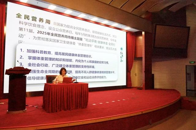 五、减重食养进单位:食药物质守护职工健康北京市卫健委工会主办“杏林艺苑·卫爱而行”2025年职工关爱大讲堂活动,临床营养科在北京中医医院工会帮助下申报的“食药物质助力健康体重管理”课程被多家医疗机构及管理单位青睐。5月23日,中医食养走进北京市医院管理中心,佟丽围绕辨证施膳,分享食药物质在体重管理中的应用经验,剖析肥胖的诱因,倡导“科学食养+适度运动”模式,助力职工建立健康生活习惯,现场互动频繁,反响热烈。