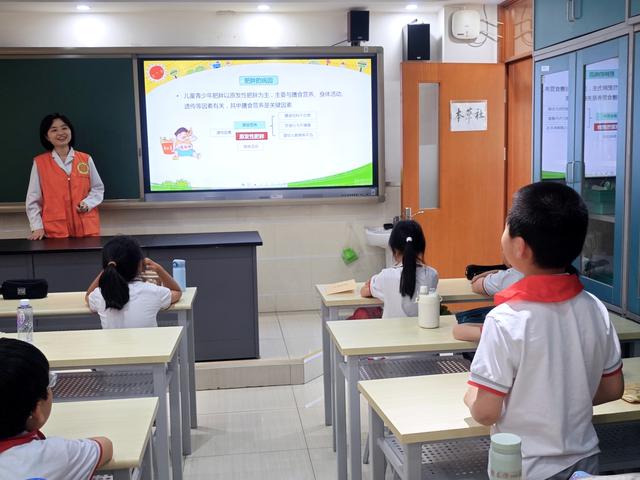 二、食养进校园,助力改善儿童肥胖近些年来,我国儿童青少年肥胖率快速上升,已成为重要公共卫生问题之一。肥胖不仅影响儿童青少年运动能力、骨骼肌肉发育和认知发展,也对身心健康产生不良影响。为深入推进合理膳食,促进儿童青少年健康体重。5月19日,临床营养科主治医师张旭随北京中医医院团委走进府学小学,开展2025中国学生营养日科普活动,带来《科学食养,减少儿童肥胖》主题讲座,引导学生树立合理饮食、科学体重的健康观。讲座现场,小学生认真听讲,踊跃提问,场面活跃。