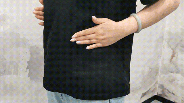 具体操作:保持双手自然重叠,以脐部为中心揉按,注意动作要和缓,按揉力度由小到大,以感觉微微温热为宜。