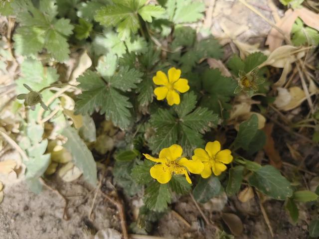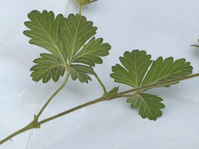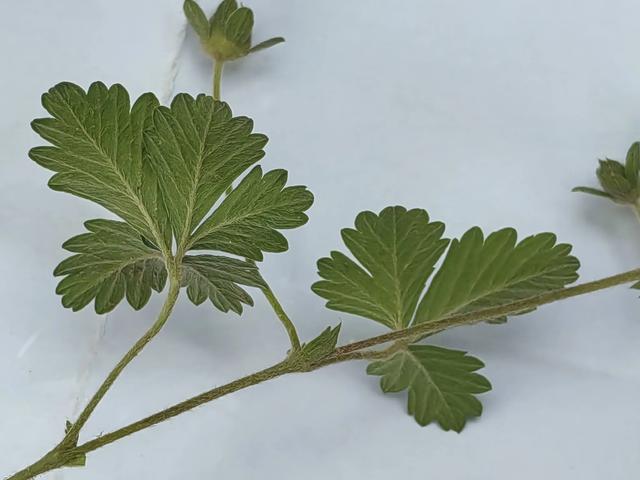 附:绢毛匍匐委陵菜与蛇莓的区别:第一,绢毛匍匐委陵菜的为三出复叶,但边缘小叶有时深裂;蛇莓的叶为整齐的三出复叶。第二,绢毛匍匐委陵菜的副萼片先端不裂,椭圆状披针形;
