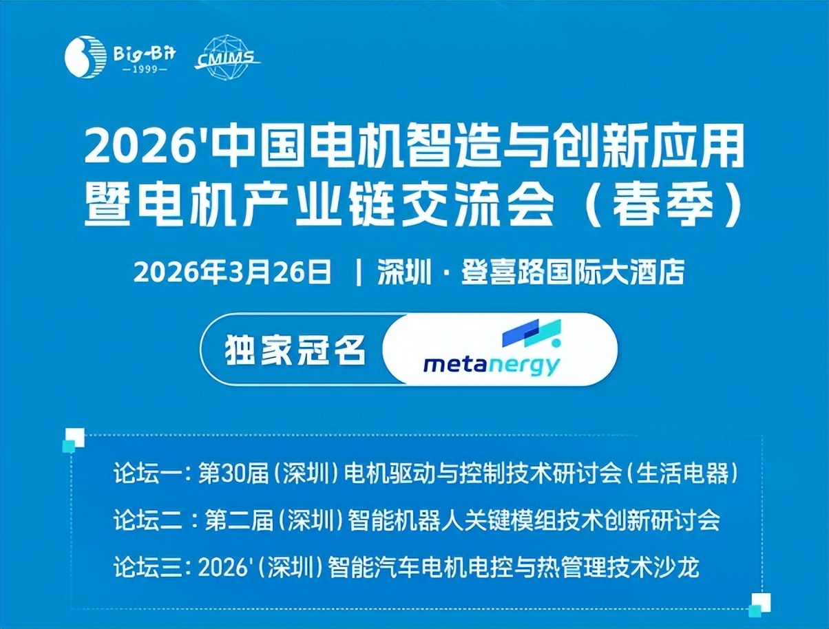 为促进电驱行业交流与技术融合,由Big-Bit商务网主办、《半导体器件应用》杂志承办的中国电机智造与创新应用暨电机产业链交流会(春季)将于2026年3月26日在深圳隆重举行。