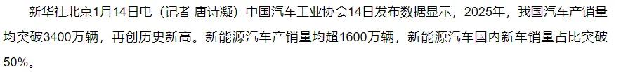 据中国汽车工业协会数据,2025年我国新能源汽车产销量均已突破1600万辆。