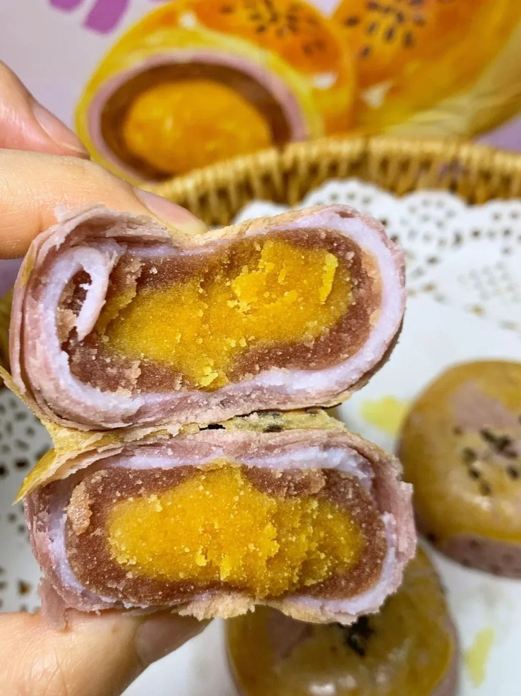 酥到掉渣的外皮,软糯Q弹的雪媚娘,仿佛给味蕾来了个温柔拥抱。细腻绵密的芋泥,芋香浓郁得仿佛把整个芋头田的精华都浓缩其中。中心那沙沙的咸蛋黄,咸香与芋泥的甜糯完美中和。