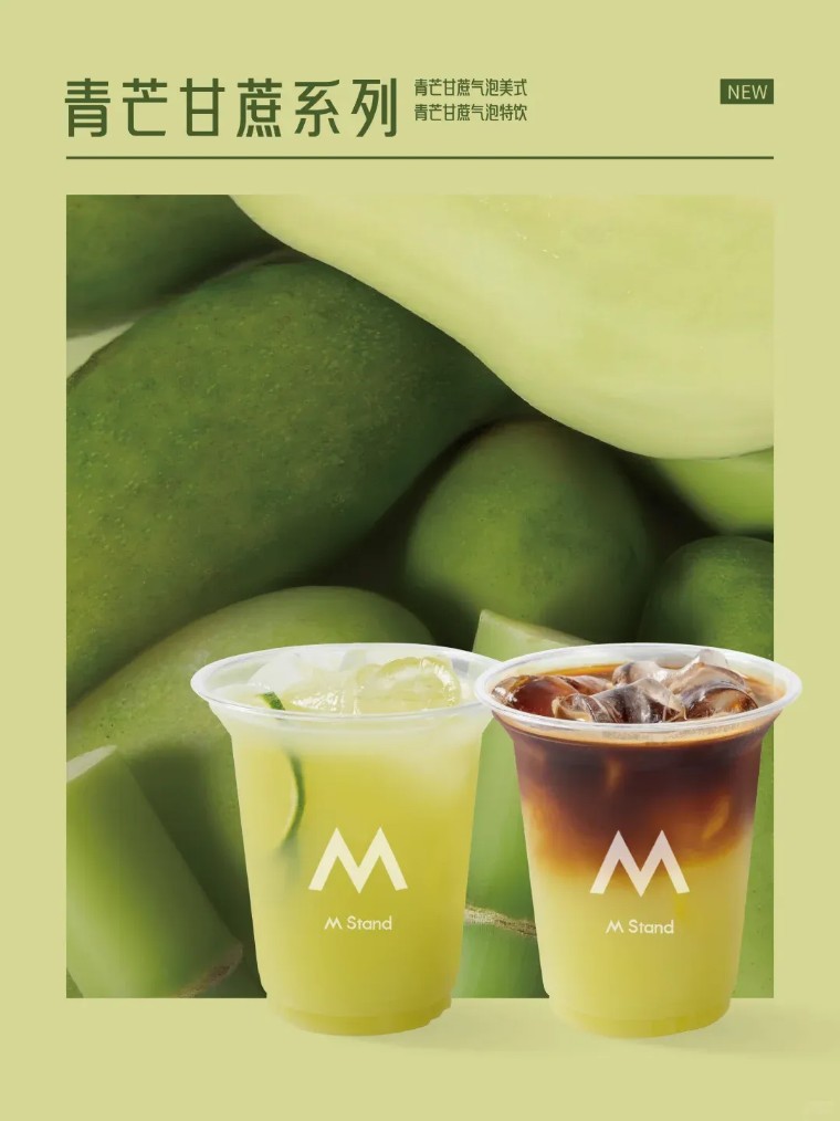 青芒甘蔗气泡美式,以酸甜青芒为引相遇沁爽甘蔗果香,搭配清爽气泡水,融合坚果黑巧风味意式浓缩,撞色分层,与口感一起明亮;青芒甘蔗气泡特饮,酸甜青芒与甘蔗的丝丝清甜相互平衡,呈现丰富层次的舒爽口感,爽冽气泡水卷起舌尖凉意,一秒置身热带海岛边。