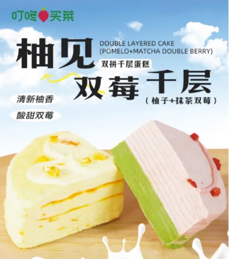 叮咚买菜上新「千层蛋糕双拼(抹茶双莓味+柚子味)」