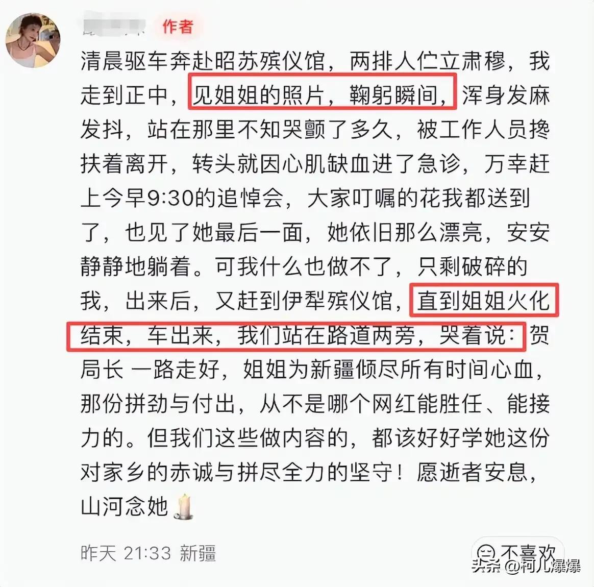有个赶去送别的网友说,到了灵堂,看见那张黑白照片,整个人是从脚底板往上发麻,眼泪根本止不住。不是因为哪怕她是局长,而是因为大家心里都甚至,她是真把老百姓装心里的。