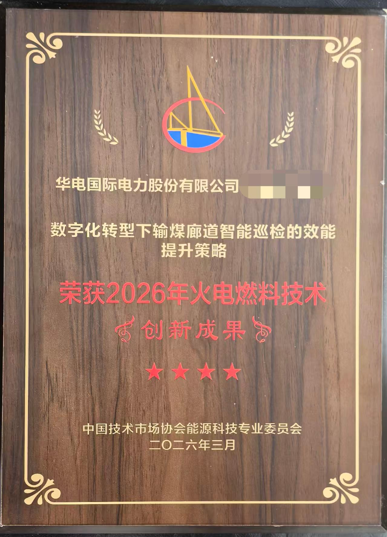 近日,2026 年火电燃料技术创新成果评选结果正式揭晓,华电国际电力股份有限公司联合吉泰智能共同研发的输煤廊道巡检机器人系统,凭借突出的技术创新性、实践应用价值与显著的经济社会效益,成功斩获《2026 年火电燃料技术创新成果奖》,为传统火电行业数字化转型树立了标杆典范。