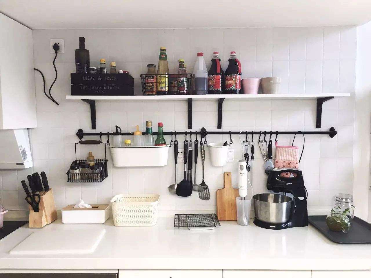 如果是厨房缺少收纳空间的话,也可以购置成品的收纳架等等,现在这样的收纳架网上超多,功能也很强大,只要你想要怎么收纳,尺寸大小都是随你自己选择的,不得不说现在确实方便了不少,直接在网上买也不用找定制,方便又快捷。