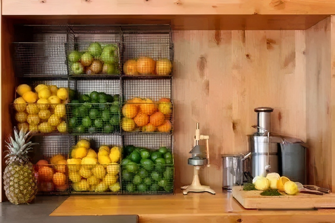 台面的收纳设计,水果篮收纳,或者是蔬菜篮组装起来作为收纳空间,不仅看起来整洁好看,而且还作为一个小小的风景线呢?你们觉得这个设计怎么样呢?