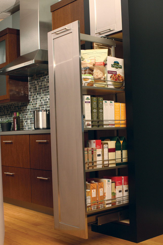 现在很多家庭对于橱柜的需求已经不只是单纯的储物而已了,就连零食,调味料以及其他的物品摆放,为了按照个人的需求来制定,拉篮式也是当下比较流行的一种橱柜设计。