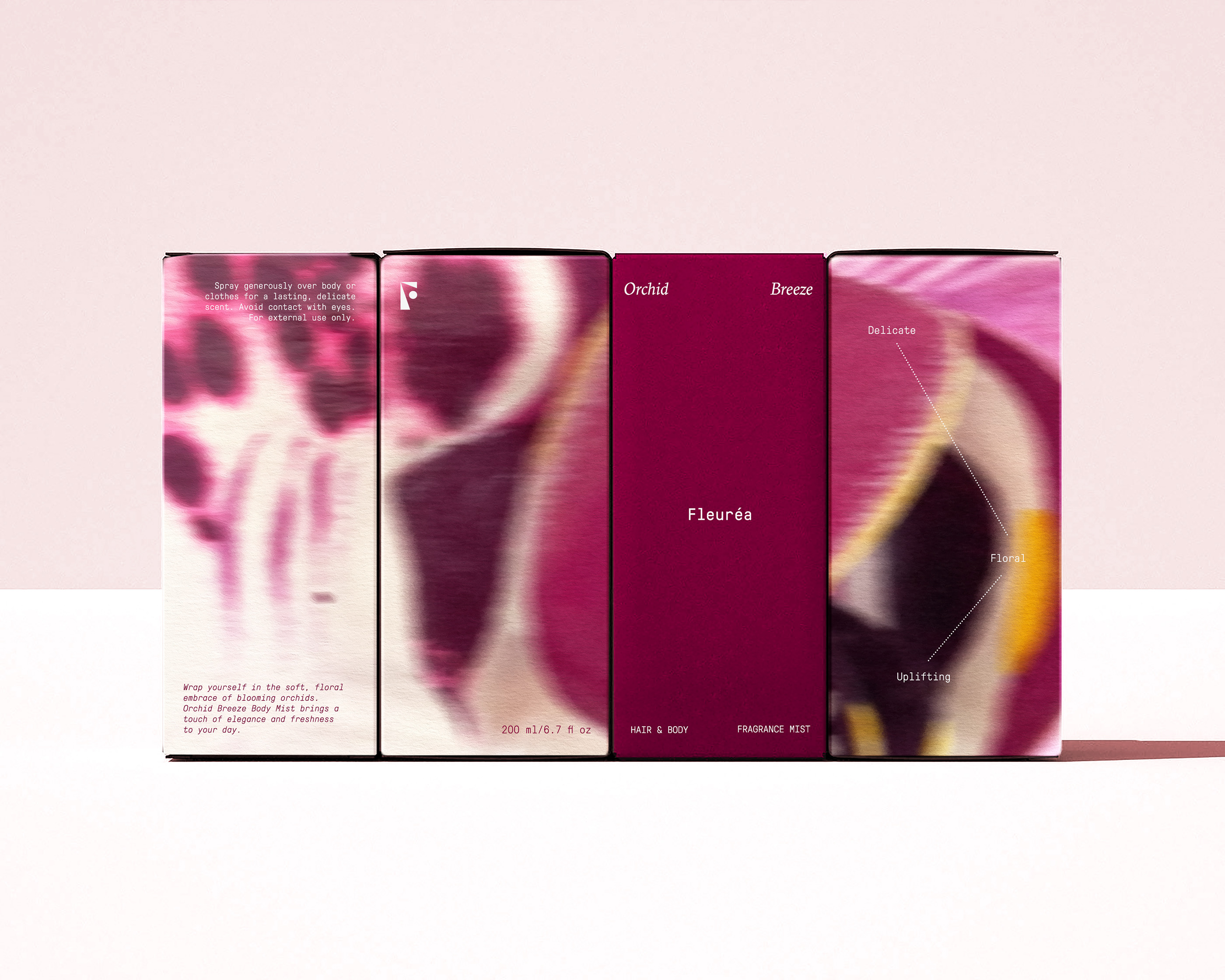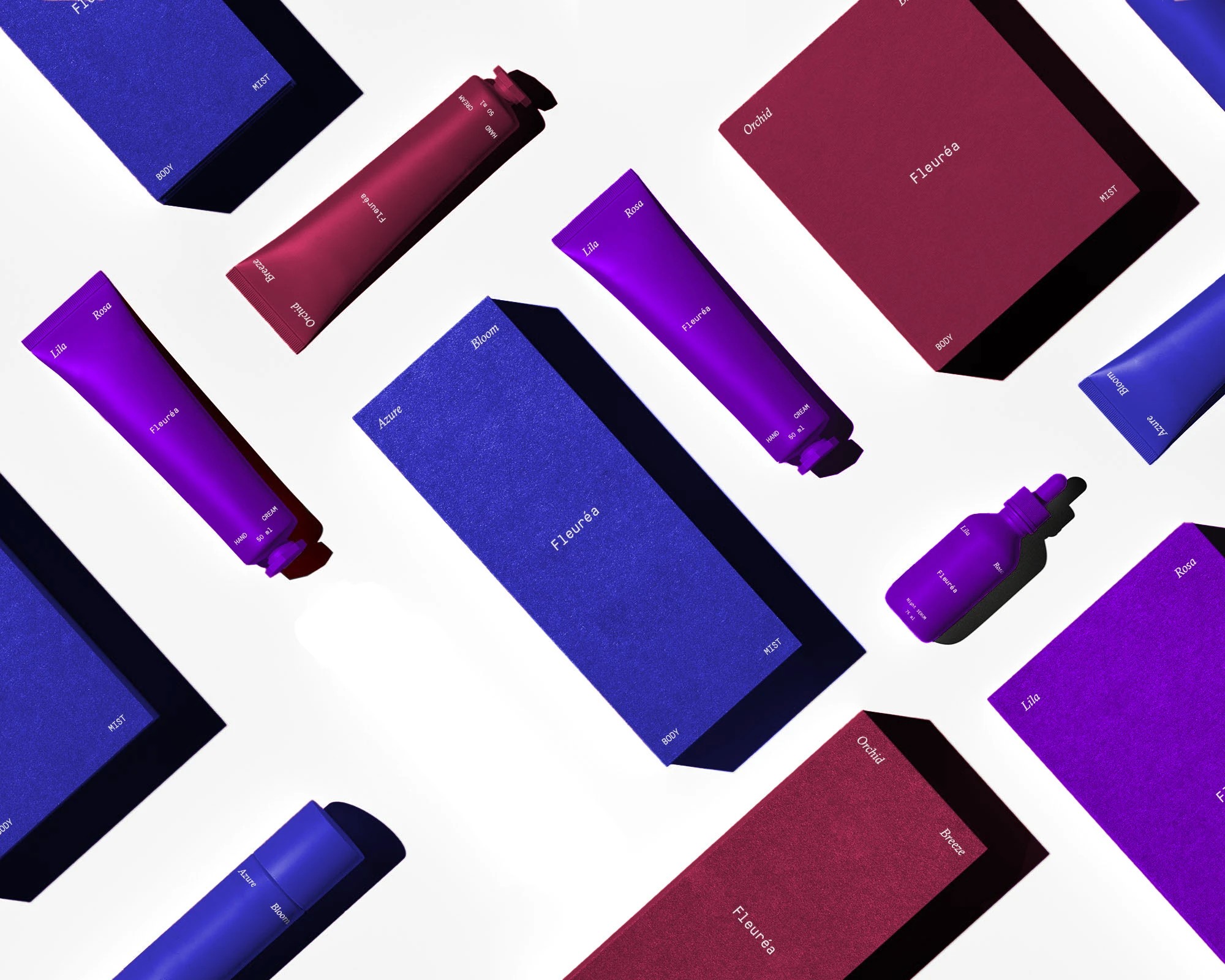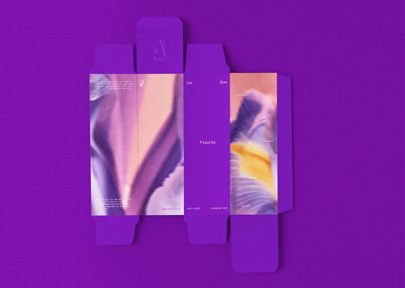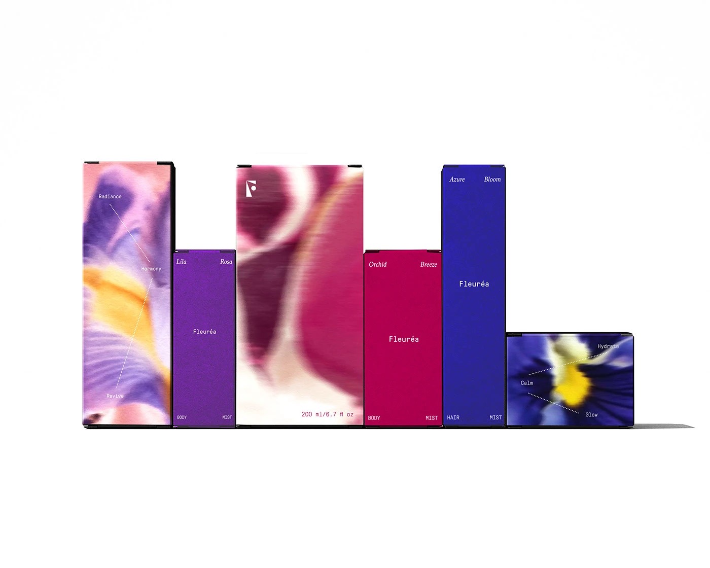 Fleurea的包装简直就是一场视觉的盛宴!它从花朵的柔美与绚烂中汲取灵感,将花卉元素玩出了新花样。包装上的花卉图案并非传统的写实风格,而是采用了抽象且富有动感的模糊处理手法,仿佛花朵在微风中轻轻摇曳,充满了灵动的韵律。色彩搭配更是大胆而精妙,紫色、粉色、蓝色等梦幻色调相互交织,营造出浪漫而神秘的氛围。而且,每个包装上的文字信息简洁明了,与图案相得益彰,既突出了名称和功能,又不破坏整体的美感。这样的包装设计,就像是一件件精致的艺术品,让人在看到的瞬间就被深深吸引,忍不住想要一探究竟。