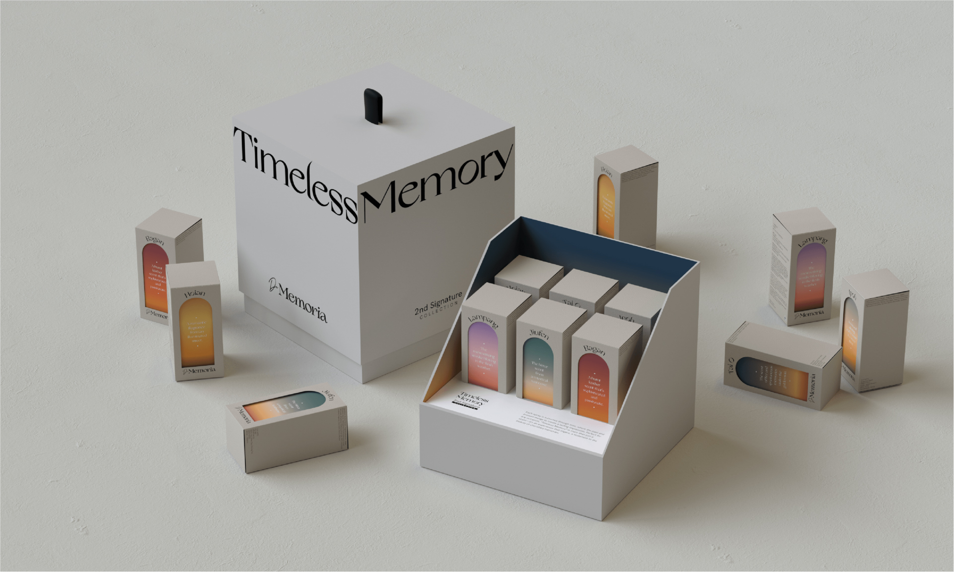 从包装设计赏析的角度来看,Fleurea和DeMemoria都展现出了极高的设计水准和独特的创意理念。Fleurea以花卉的抽象表达和绚烂色彩,打造出充满活力与浪漫的视觉形象,精准地抓住了追求个性与美感的人群心理;而DeMemoria则凭借对自然景象的巧妙模拟和优雅的造型设计,营造出富有诗意和情感深度的包装氛围,引发消费者的情感共鸣。它们都跳出了传统包装设计的框架,用独特的视觉语言为产品赋予了更多的附加值,让包装成为了吸引消费者目光、传递品牌内涵的重要媒介,无疑是包装设计领域的杰出典范。