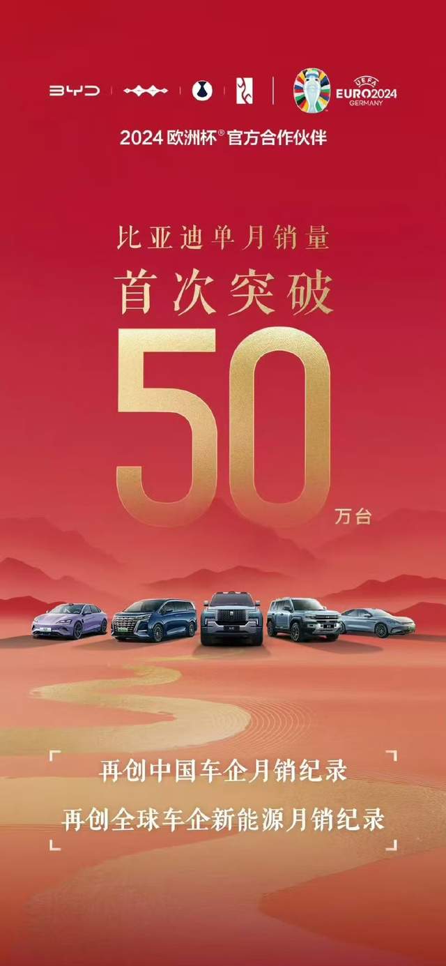 比亚迪又一新里程碑达成!过去的10月份里,比亚迪的销量达到了502657台,这是比亚迪月销量首次超过50万台,刷新中国品牌以及全球新能源车企月销记录,成为中国车企及世界新能源车企单月销量纪录创造者!并且今年比亚迪1-10月销量已达325万辆,相信很快就会完成第1000万辆新能源汽车下线,离全年销量突破400万辆也指日可待了。