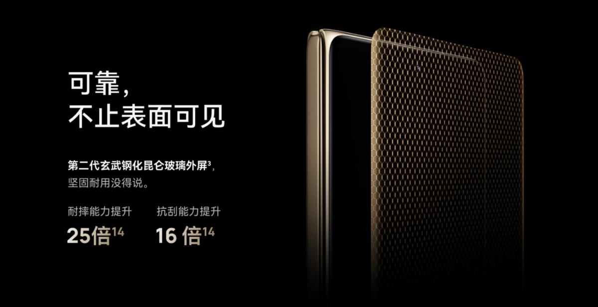 更值得一提的是,技术的不断进步让折叠屏手机的可靠性和耐用性得到了显著提升,有力回应了消费者对“折叠屏真的耐用吗?”的顾虑。通过多代技术迭代,主流品牌的折叠屏手机在铰链寿命、屏幕折痕以及日常防护等方面均已达到很高的标准。比如,华为Mate X6搭载的玄武水滴铰链,其核心部件100%使用1900MPa超强火箭钢,材料强度提升27%,确保铰链在频繁开合中依然经久耐用。其典藏版外屏采用的第二代玄武钢化昆仑玻璃、内屏采用的复合叠层结构设计,更是将手机的抗刮耐摔、抗冲击性能推向了新高度。
