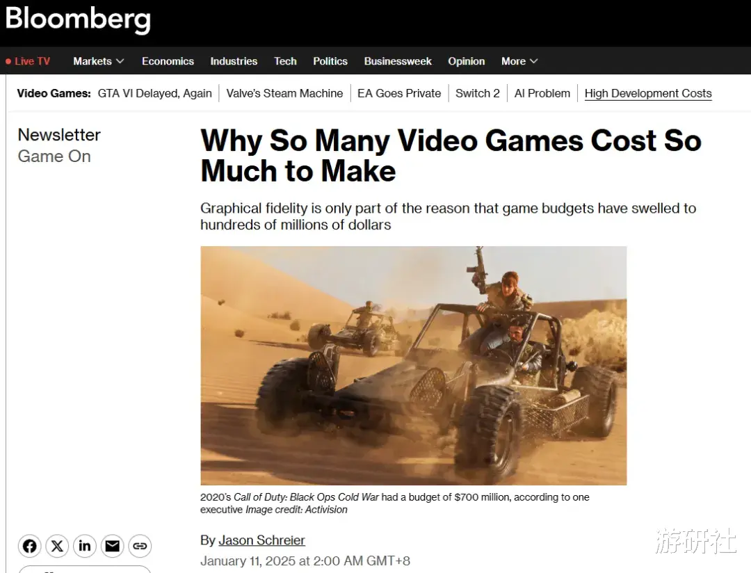 彭博社Jason老师今年又写了篇雄文:《为什么许多游戏成本过高》(他基本年年提成本话题)