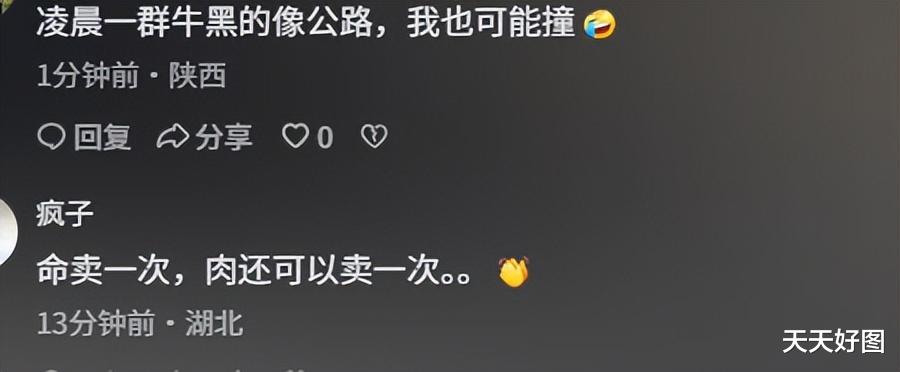谁能大晚上赶牦牛上路,而且从现场看到,国道两边没有路灯,牦牛自身有黑毛覆盖,从远处看几乎与马路混为一色,疾驰的货车,稍有不慎根本就没有发应刹车时间。