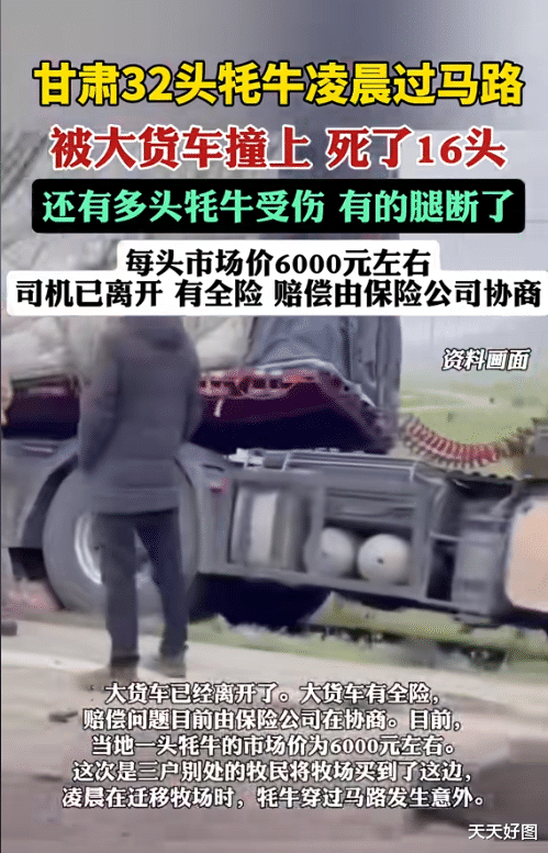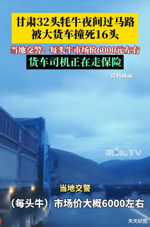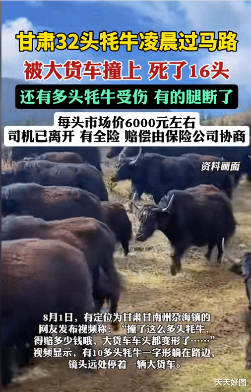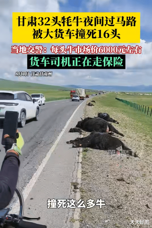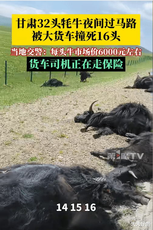 货车撞死16头牦牛后续,赔6000一头,网友疑惑半夜赶牛上马路动机