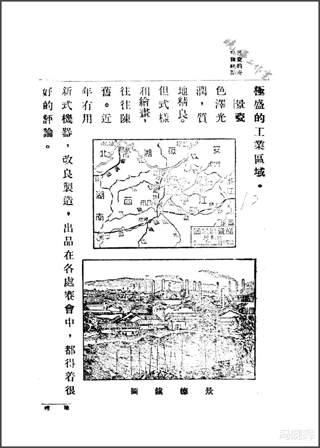从南昌市渡鄱阳湖,溯昌江,到浮梁县。浮梁县就是景德镇,近年移县治于此,千余年前就因制瓷著名;现在我国所用的瓷器,有许多是从这里出产。造瓷的瓷土,由鄱阳湖沿岸和安徽省的祁门运来。制瓷手续很多,大别为淘泥、制坯、修坯、上釉、烧制、施彩数种,都用分工的制度。现在瓷窑约有一百二十所;每年烧窑的时候,人口骤加,通夜火光烛天,是内地极盛的工业区域。