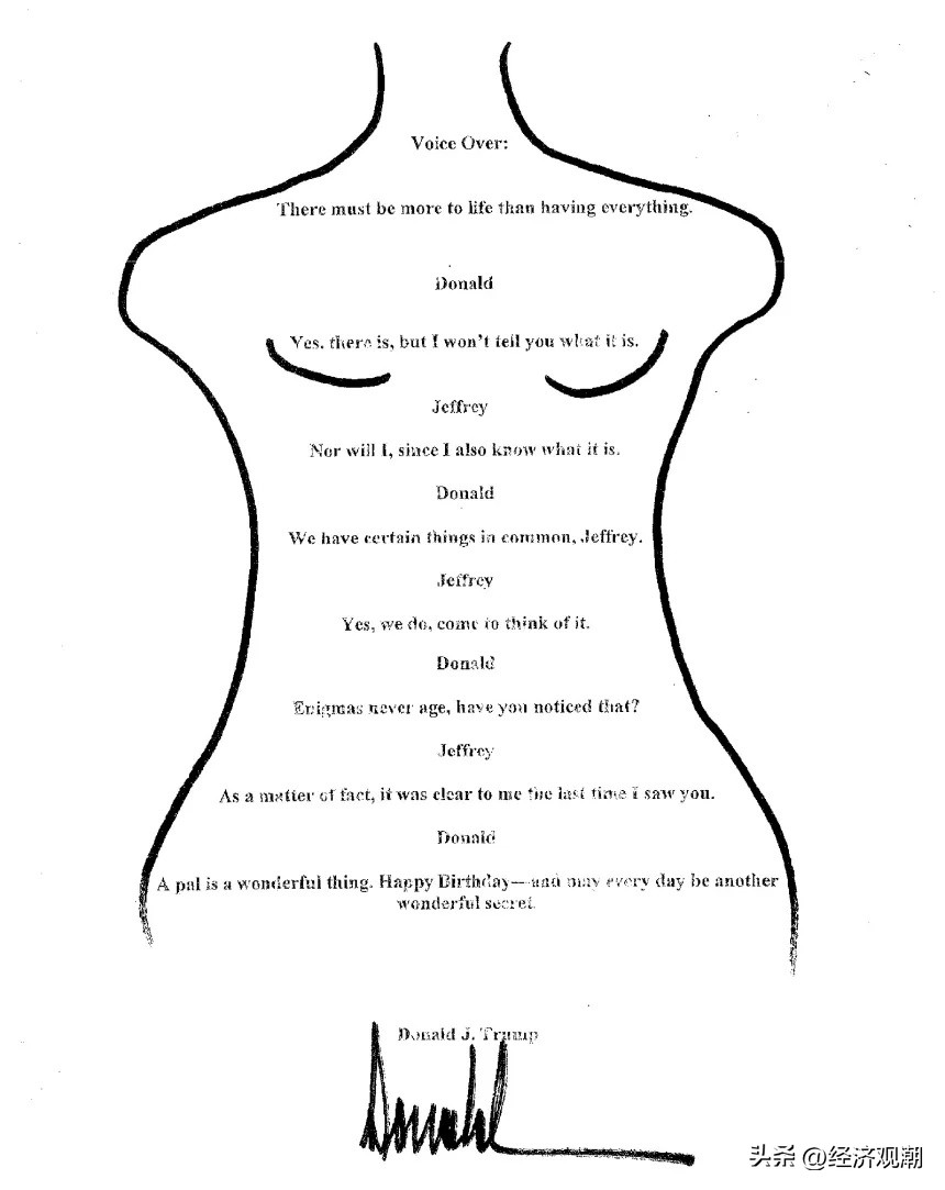 这一切都特别奇怪,因为这封信从表面上看似乎并没有那么诅咒特朗普。我们已经知道他在这一时期与爱泼斯坦是好友。我们也知道他表现出了猥亵评论的倾向。