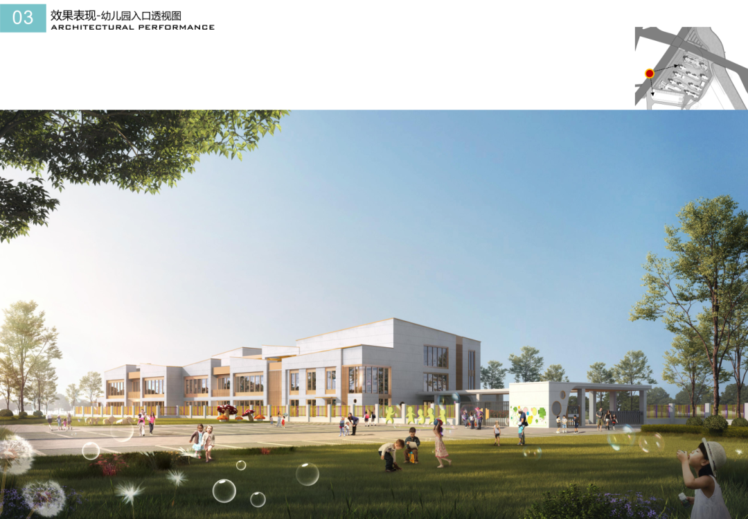 ③幼儿园重新设计,位置由原方案东南角调整到西南角。