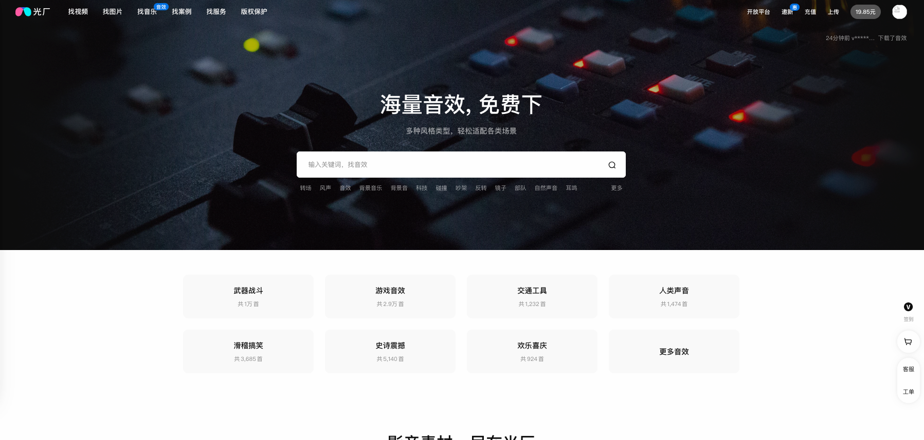 光厂(VJshi.com)是国内领先的数字音视频素材共享平台,正式成立于2012年。经过十余年发展,它已从一个专业的视频素材交易平台,成长为覆盖音效、音乐、视频等多元内容的综合性创意资源库。