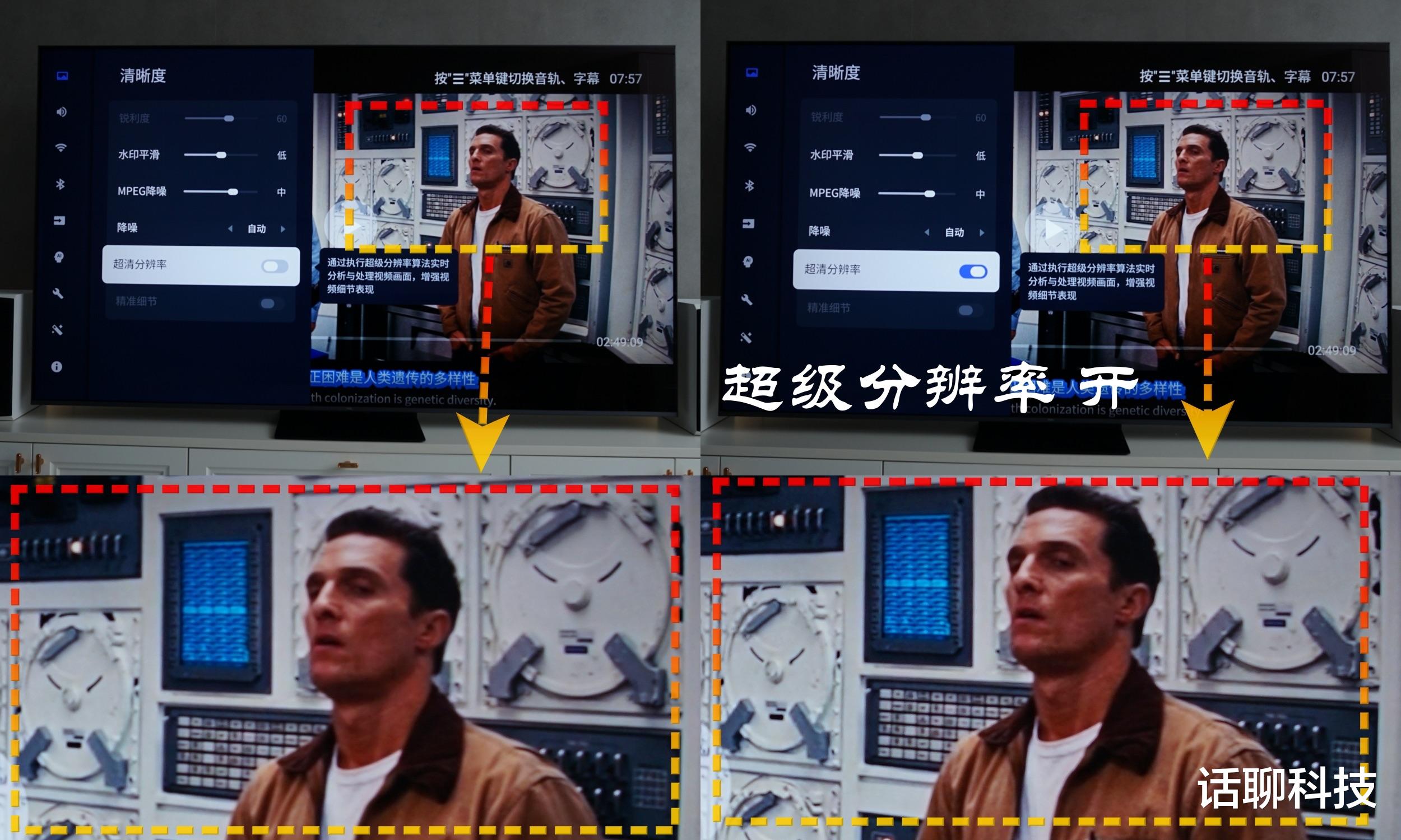 比如观看720P SDR规格的《星际穿越》电影的时候,开启与不开启超级分辨率,真能看出清晰度的明显变化。所以我在用这款电视回味老电影的时候,总是喜欢开启超级分辨率。