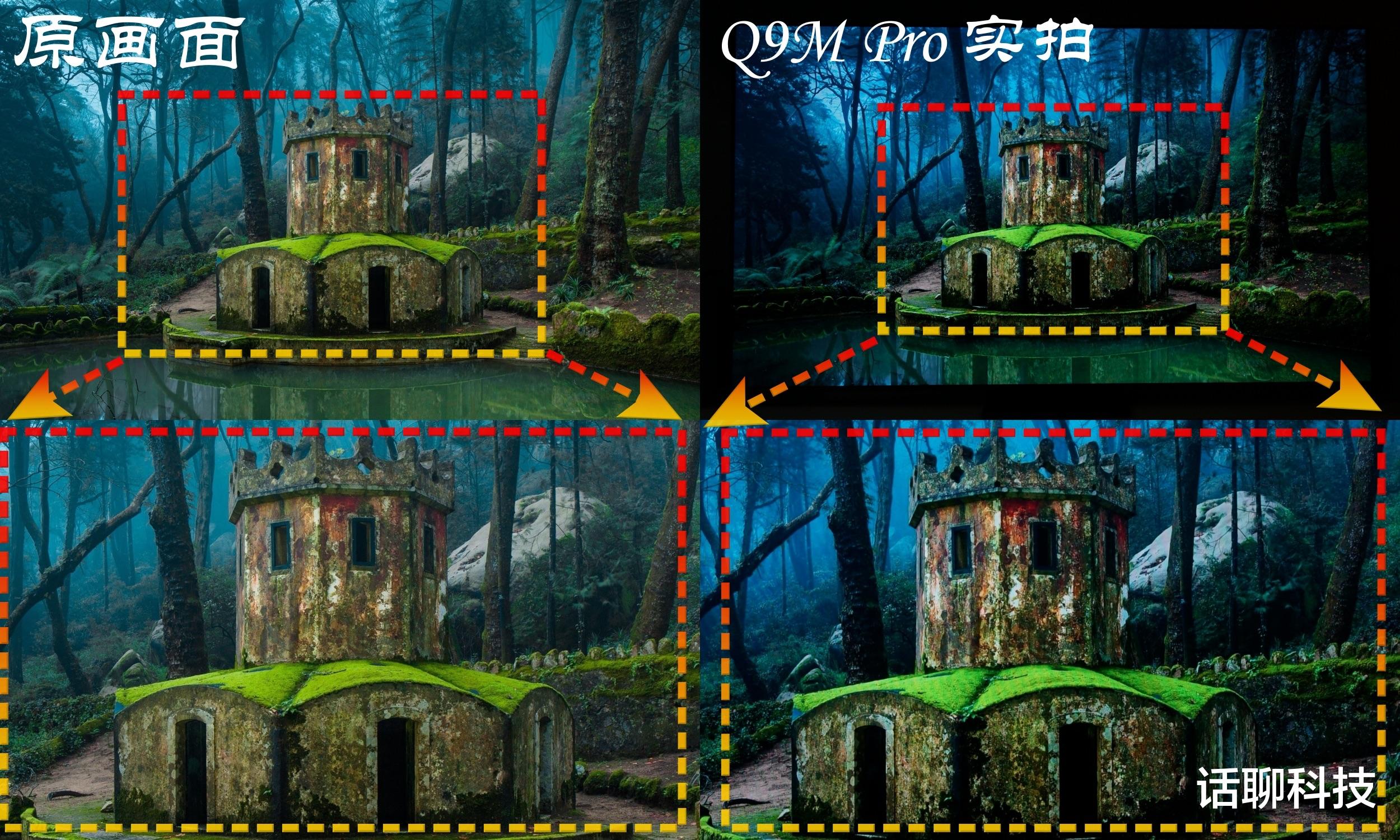 这种优势不仅体现在显示暖色调为主的画面,显示冷色调也一样,下图是原图与实拍图对比略带幽蓝、绿荫深绿都都表现的很生动。特别是色彩斑驳的古堡,在潮湿的水边,色彩会更深邃,如果你也玩过户外、进过原始深林,就能知道那种有点刺眼的感觉才是更接近身临其境的感受。